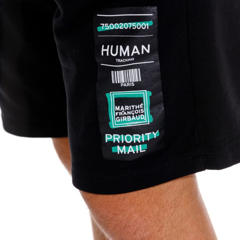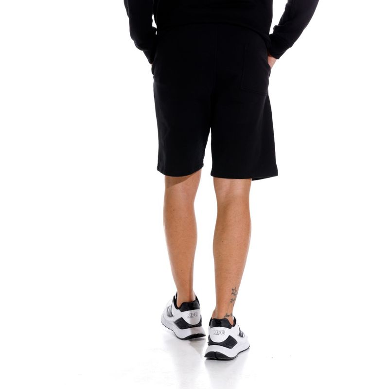 Bermuda en burda de cintura elástica ajustable con cordón contramarcado. Confeccionado en mezcla de algodón de 270gr. Estampado en pierna izquierda prenda puesta.