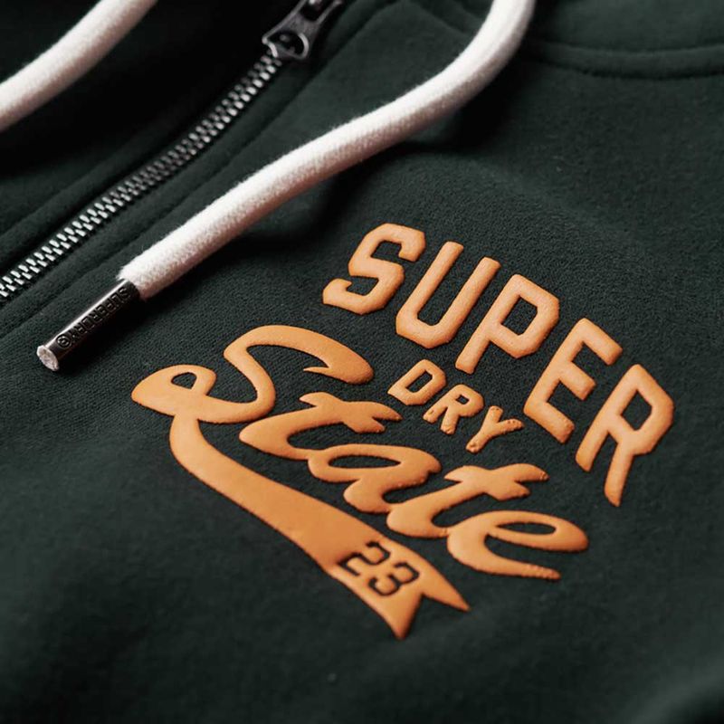 Esta sudadera con capucha clásica es una carta de amor a la estética universitaria vintage. Inspirada en los clásicos diseños de estilo urbano y chic de las últimas generaciones, esta nueva versión reinventa los atemporales modelos tradicionales mediante un diseño tan cómodo como de óptima calidad. Su confección en un suave tejido cepillado y cómodos ribetes de canalé la convierten, además, en la prenda perfecta para presumir de confianza y estilo natural a diario. Corte relajado: el corte clásico de Superdry Una prenda ni muy estrecha ni muy holgada, simplemente perfecta. Elige tu talla habitual, Capucha forrada con cordón de ajuste, Cierre de cremallera, Ribetes de canalé, Dos bolsillos delanteros, Gráficos de estilo universitario, Insignia con el logotipo de Superdry, Forro cepillado, Detalles metálicos con el logotipo de la marca.