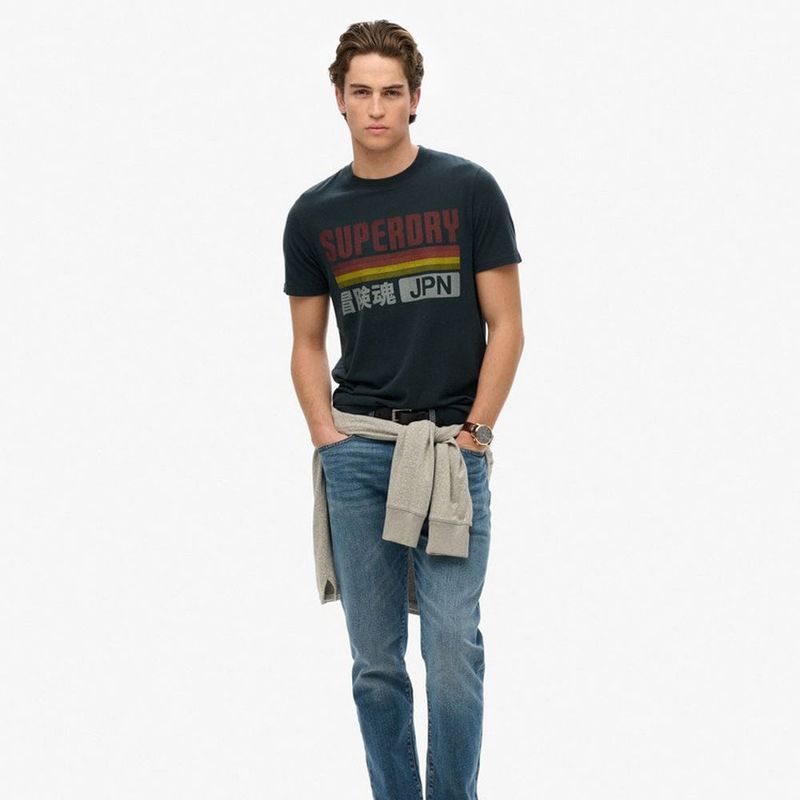 Camiseta Manga Corta Para Hombre Japan Stripe Relaxed Tee Superdry