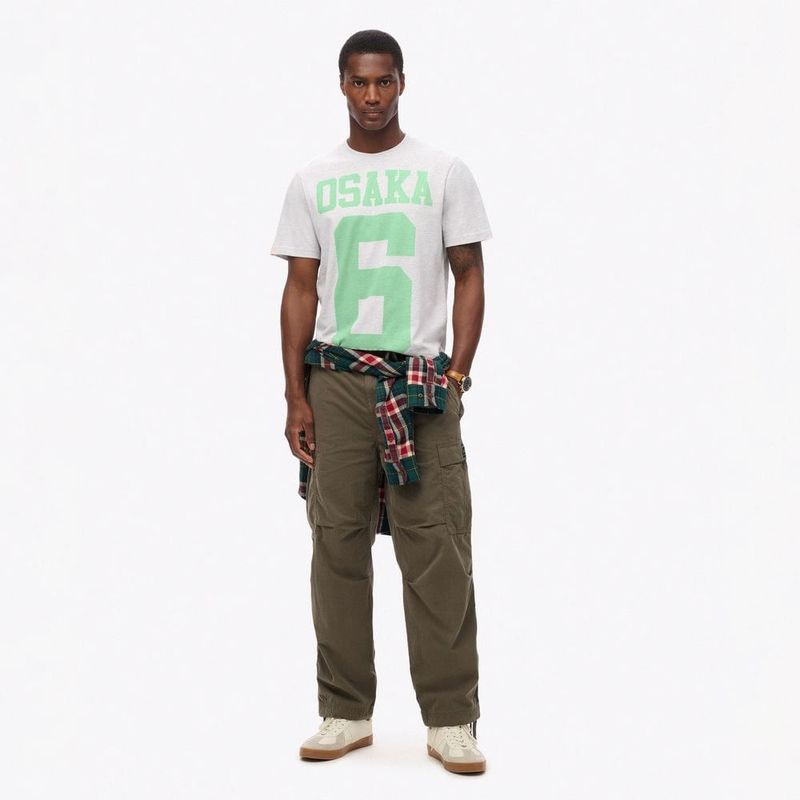 El estampado gráfico Osaka 6 es uno de los diseños más emblemáticos de los últimos 20 años. Por ello, no es de extrañar que hayamos decidido traer de vuelta este diseño clásico para convertirlo en el protagonista de una nueva colección conmemorativa en honor a nuestra trayectoria. Esta camiseta, una reinterpretación en clave contemporánea de un diseño clásico, combina las últimas técnicas de serigrafía al agua con una serie de detalles conmemorativos totalmente actualizados para ofrecerte ese toque tradicional tan genuino. Corte relajado: el corte clásico de Superdry. Una prenda ni muy estrecha ni muy holgada, simplemente perfecta. Elige tu talla habitual, Cuello redondo, Manga corta, Estampado Heritage Osaka 6, Ribetes conmemorativos de la marca, Etiqueta naranja clásica con el logotipo en la manga.