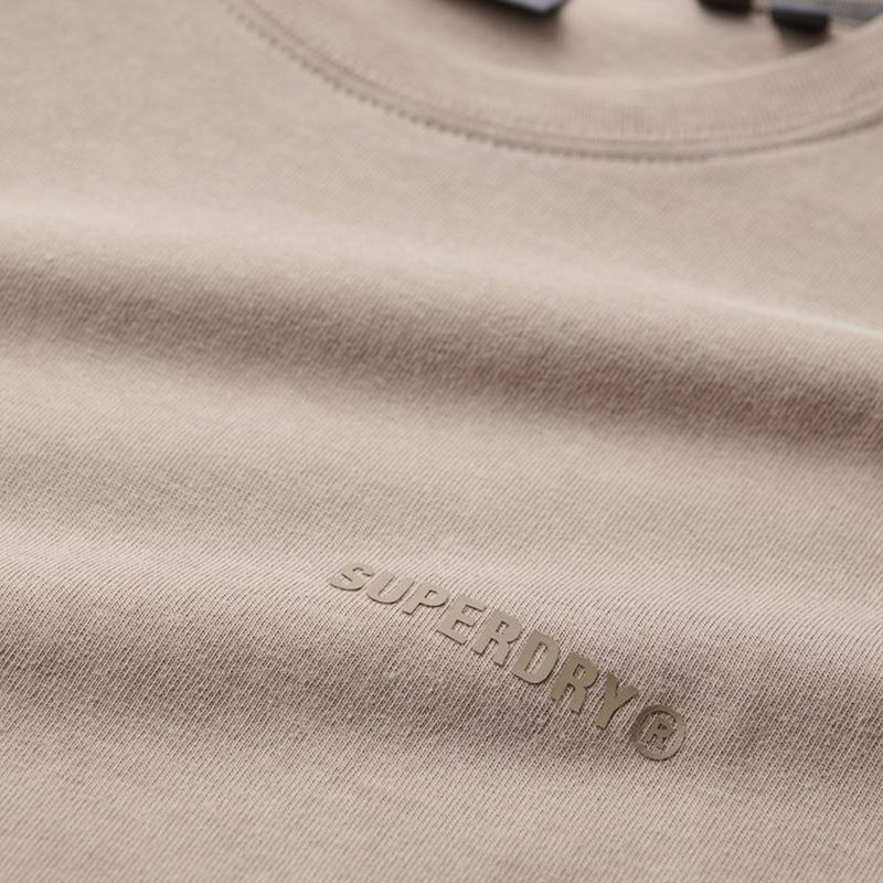 Básico, pero ni mucho menos aburrido. Hemos confeccionado esta camiseta en algodón supersuave para asegurarnos de que te sientas lo más cómodo posible, incluso cuando estás descansando en casa. Con un moderno acabado sobre teñido y texto minimalista con textura en el pecho, se convertirá rápidamente en tu prenda imprescindible para cualquiera de tus planes. Corte holgado: el corte que combina comodidad y estilo moderno, y que convierte este diseño en una prenda imprescindible en cualquier fondo de armario., Cuello redondo de canalé, Manga corta hasta el bíceps , Look sobre teñido, Texto de Superdry con textura de goma estampado en la esquina .