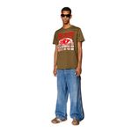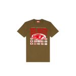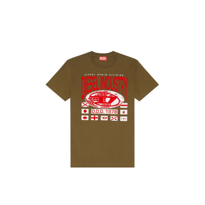 Esta camiseta slim fit para hombre está confeccionada en suave punto de algodón. Impreso con las letras de Diesel Industry y el logotipo de la oval D en forma de globo terráqueo en una mezcla de acabados flocados y al agua.