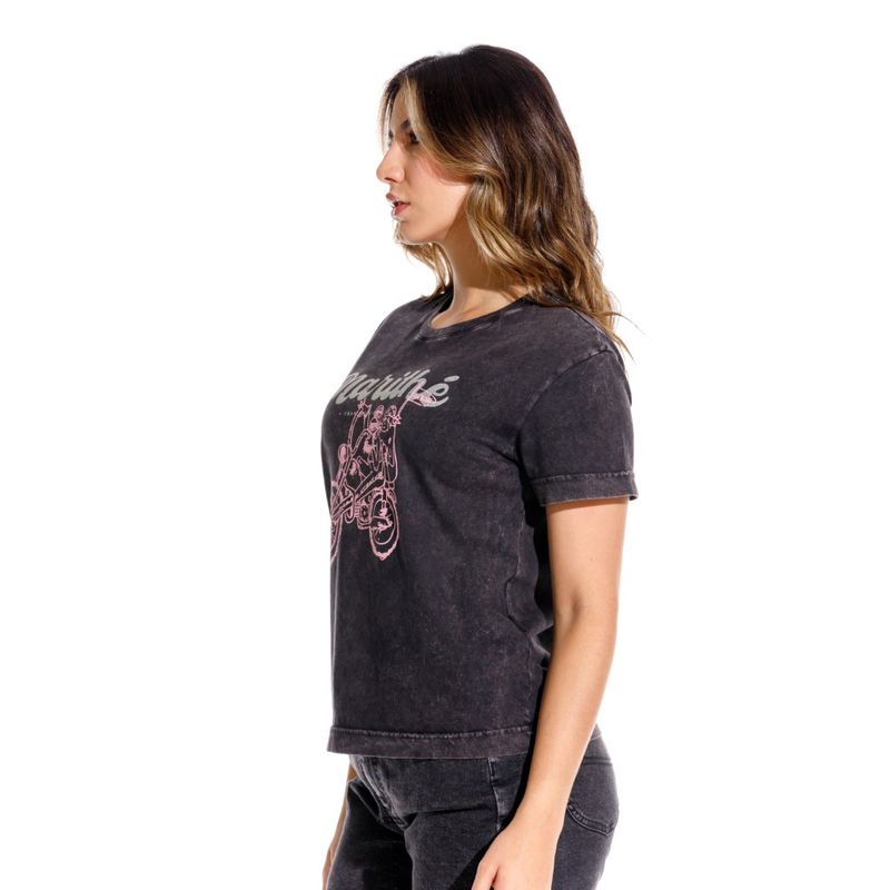 Camiseta con cuello redondo en rib y manga corta. Confeccionado en 100% algodón.Efecto lavado. Estampado en frente con técnica en alta densidad.