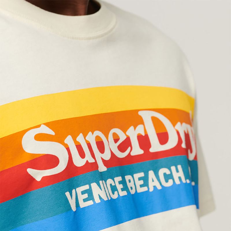 Las rayas son un básico de la moda vintage. Son un diseño muy asociado con la forma en que recordamos los años 70 y 80, y nuestra camiseta Vintage Venue reproduce su estilo nostálgico. Hazte con esta reinterpretación atemporal para renovar tus básicos de fondo de armario y lucir un estilo informal que capture de forma auténtica el espíritu retro. Corte relajado: el corte clásico de Superdry. Una prenda ni muy estrecha ni muy holgada, simplemente perfecta. Elige tu talla habitual, Cuello redondo de canalé, Manga corta, Gráfico a rayas de Superdry, Etiqueta con el logotipo de Superdry.