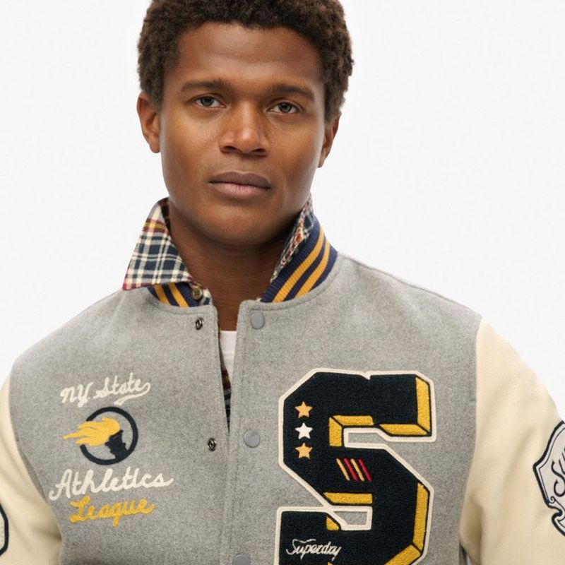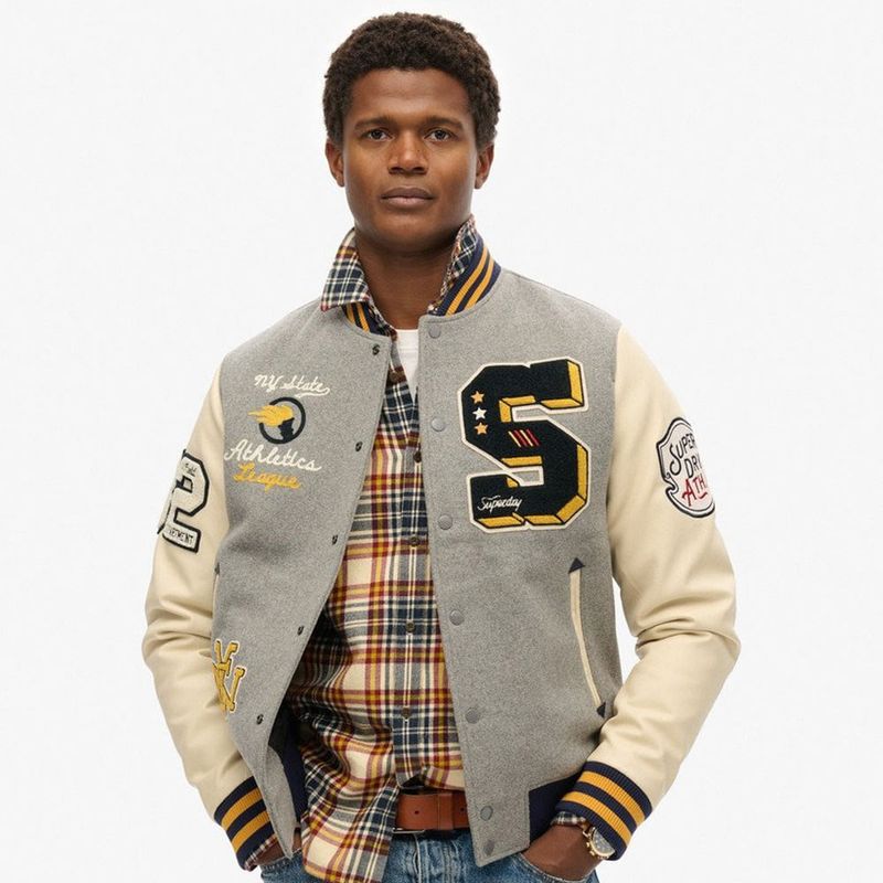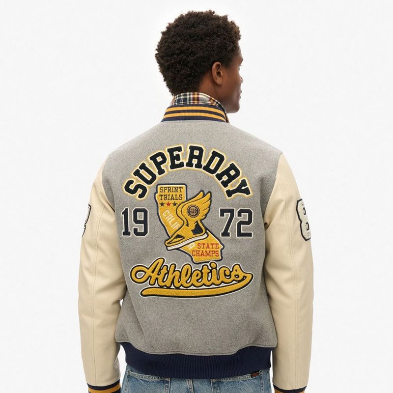 Chaqueta Casual Para Hombre College Patched Bomber