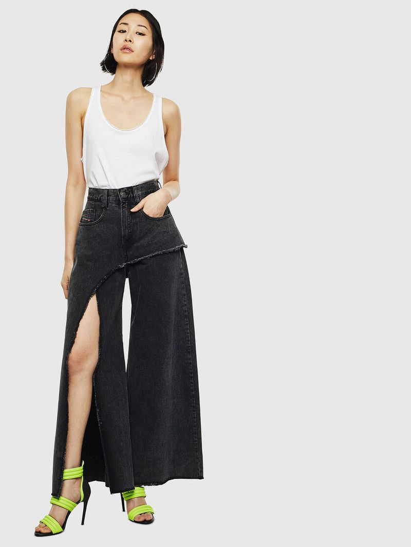 Diesel es una innovadora marca internacional de estilo de vida que produce una amplia colección de jeans, ropa y accesorios. Somos pioneros en denim y con el pasar de los años nos convertimos en una marca de ropa casual premium, siendo una verdadera alternativa en el mercado de lujo establecido. Somos una marca que representa la pasión, la individualidad y la autoexpresión. El Mundo DIESEL te espera. Estilo Ancho De Tiro Alto, Ajustado En Las Caderas. Las Tablas Laterales Estilizan Y Dan Volumen A La Silueta. País Origen: Turquia Composición:100%Algodón