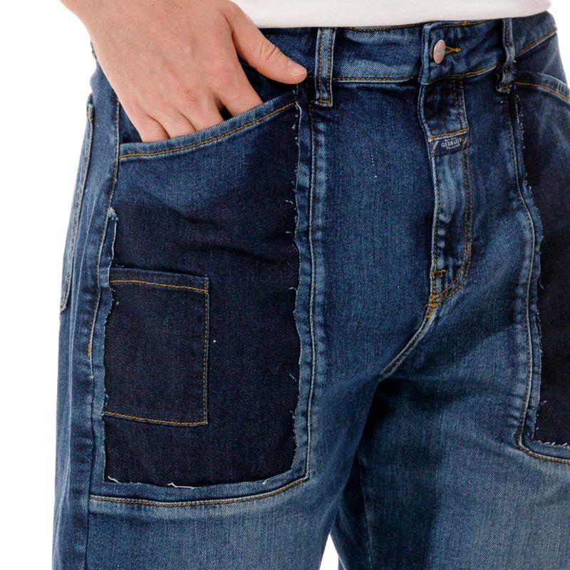 Jean tipo cargo. Efecto lavado azul medio y reservas. Fit regular. Cierre frontal con cremallera y botón metálico.El modelo mide entre 1.80 y 1.85, la prenda superior es talla m y la prenda inferior es talla 32.