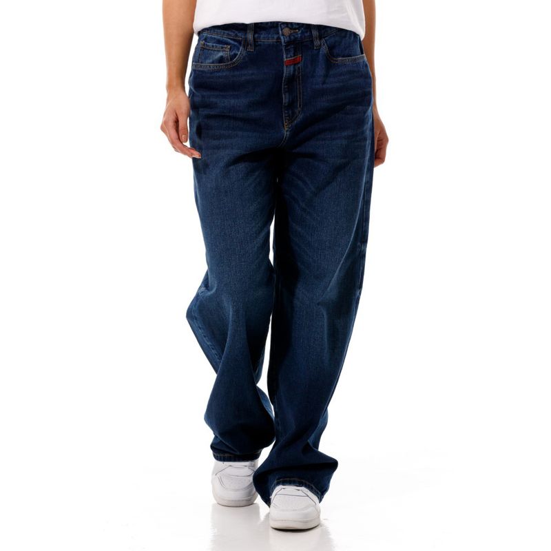 Marithé François Girbaud es una marca innovadora y vanguardista en conceptos de moda.Descubre tu outfit y no te quedes sin lo mejor de la moda internacional. Jean tiro alto 5 bolsillos. Efecto lavado azul oscuro. Fit loose. Cierre frontal con cremallera y botón metálico. La modelo mide entre 1.70 y 1.75, la prenda superior es talla m y la prenda inferior es talla 8. Composición:85%Algodón,15% Viscoza País origen: Colombia