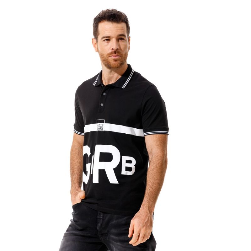 Marithé François Girbaud es una marca innovadora y vanguardista en conceptos de moda.Descubre tu outfit y no te quedes sin lo mejor de la moda internacional.Polo con cuello tejido y perilla con botones. Estampado en frente y posterior.El modelo mide entre 1.80 y 1.85, la prenda superior es talla m y la prenda inferior es talla 32.