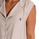 Vestido corto con cuello tipo solapa. Efecto lavado beige. Con botones en delantero.